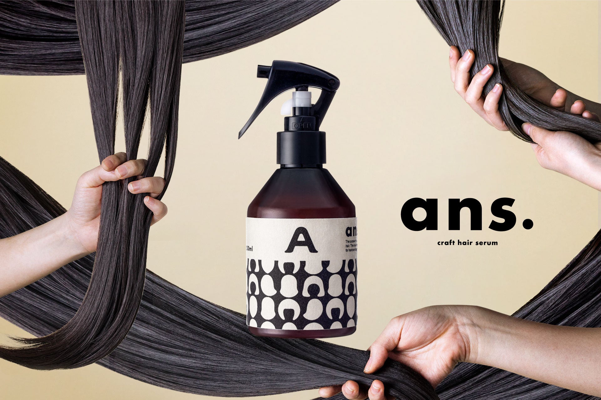 どんなヘアケアでも満足できなかった方に「髪の答え」となるヘアケア、それが「ans.(アンス)クラフトヘアーセラム」。職人「坂本真啓」氏によって手掛けられた、誰にも真似できないような手触りをつくりだす「髪の秘液」です。