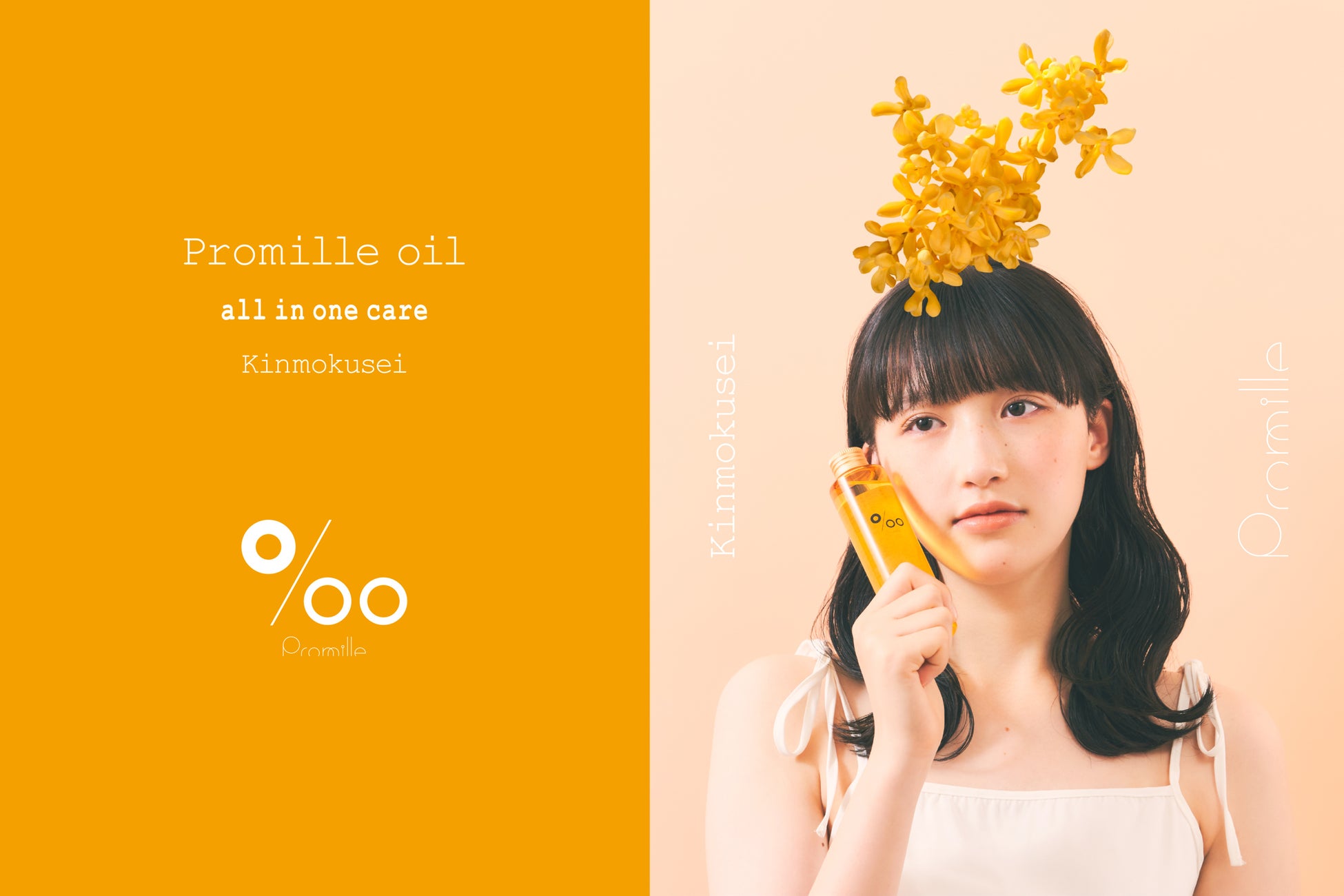 「プロミルオイル キンモクセイ」は、一足早く秋の訪れを感じさせるノスタルジックなキンモクセイ(金木犀)の香りを表現した、天然由来成分98%以上配合のヘア&ボディオイルです。まるで本物のキンモクセイのような「リアルな香り」と「香りの持続性」にこだわりました。ノーマルタイプの「Promille oil(プロミルオイル)」の使い心地はそのまま、16種の天然植物オイルに加えて世界で唯一の植物由来の宝石である【琥珀】から抽出したコハクエキス※3を配合し、夏時期の強い紫外線ダメージにより乾燥しやすくなった髪やお肌に艶やかな潤いとハリを与えます。