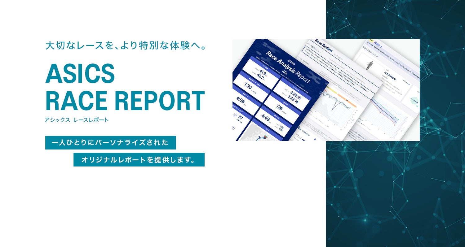 レース中のランニングフォームなどの計測データをもとに、一人ひとりのランナーにパーソナライズされた分析結果を提供するデジタルサービス「ASICS RACE REPORT」を展開