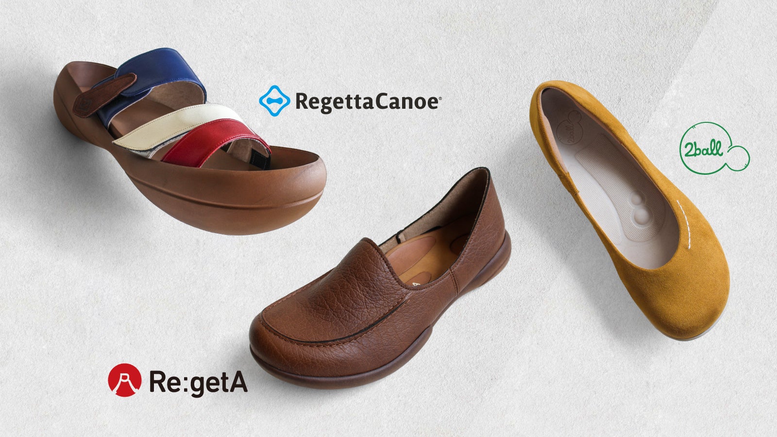 世界一“足に優しい”を目指す下駄から着想を得た日本製コンフォートシューズブランド「Re:getA(リゲッタ)」の他、カジュアルラインのRegettaCanoe(リゲッタカヌー)や『2つあってまんまるくて柔らかい』をテーマに生み出されたブランド2bal(l ツヴォル)などを展開しています。「いかにもコンフォートシューズ」というルックスではなく機能性から派生した丸みを帯びたデザインなどが支持され、累計生産数が940万足を突破。多くの方々に支持される人気ブランドに成長しました。