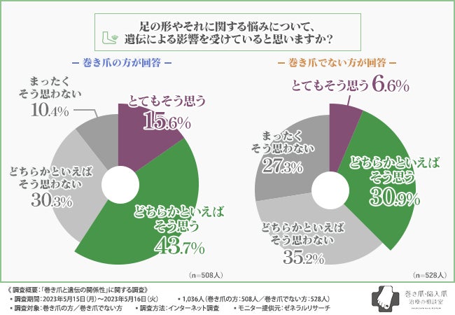 そこで今回、合同会社ひまわりコーポレーションは、「専門医と学ぶ巻き爪・陥入爪治療の相談室」(https://medical-media.jp/)を運営する企業として、巻き爪の方と巻き爪でない方を対象に、「巻き爪と遺伝の関係性」に関する調査を実施しました。