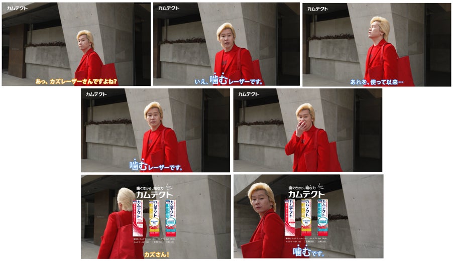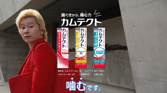 「歯ぐきから、噛む力」カムテクトをカズレーザーさん自らが体現した末に、改名をしてしまうという動画になっています。