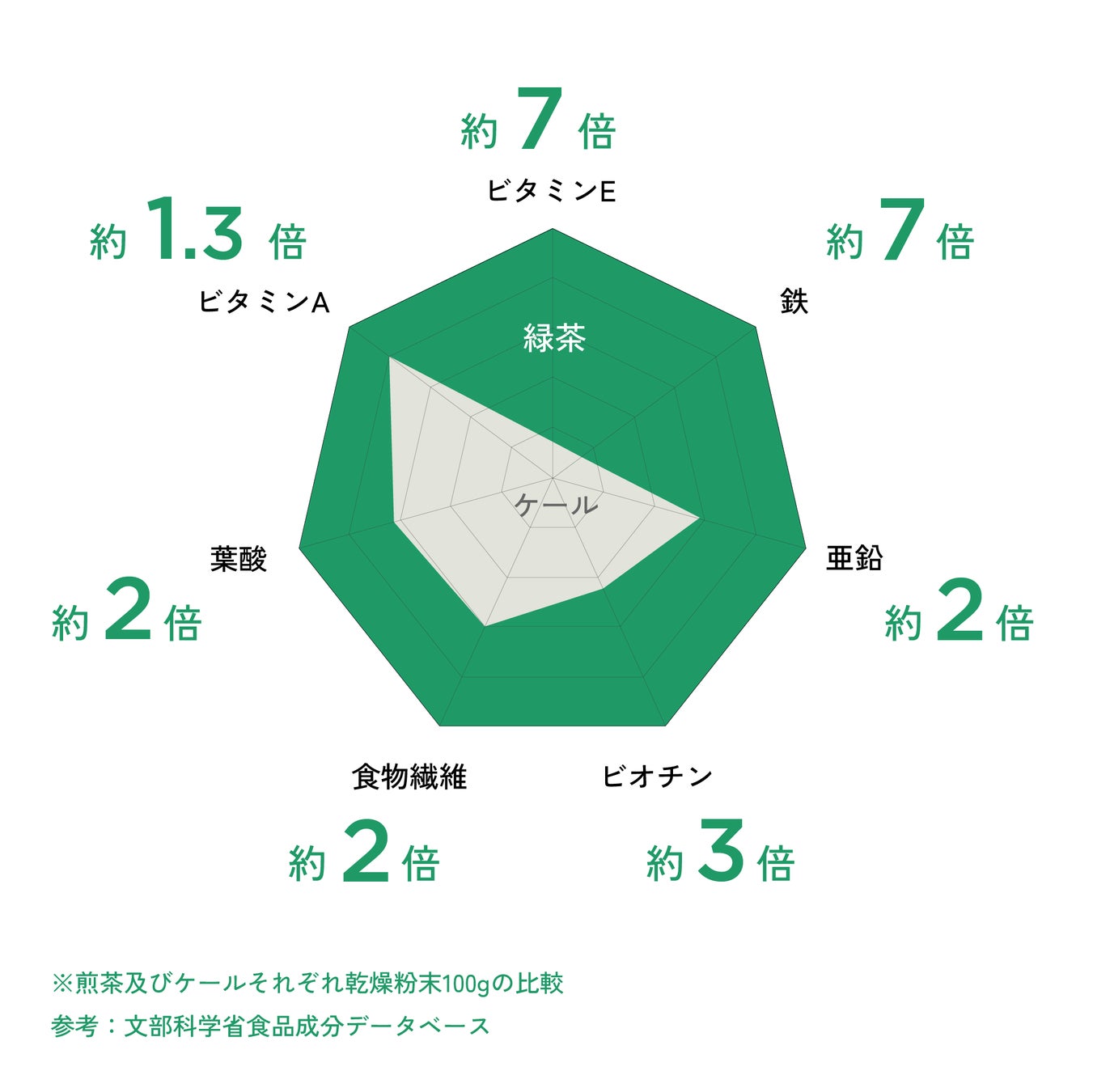 緑茶には、野菜の王様とも言われるケールと同等以上の多くの栄養素が含まれていることがわかっています。