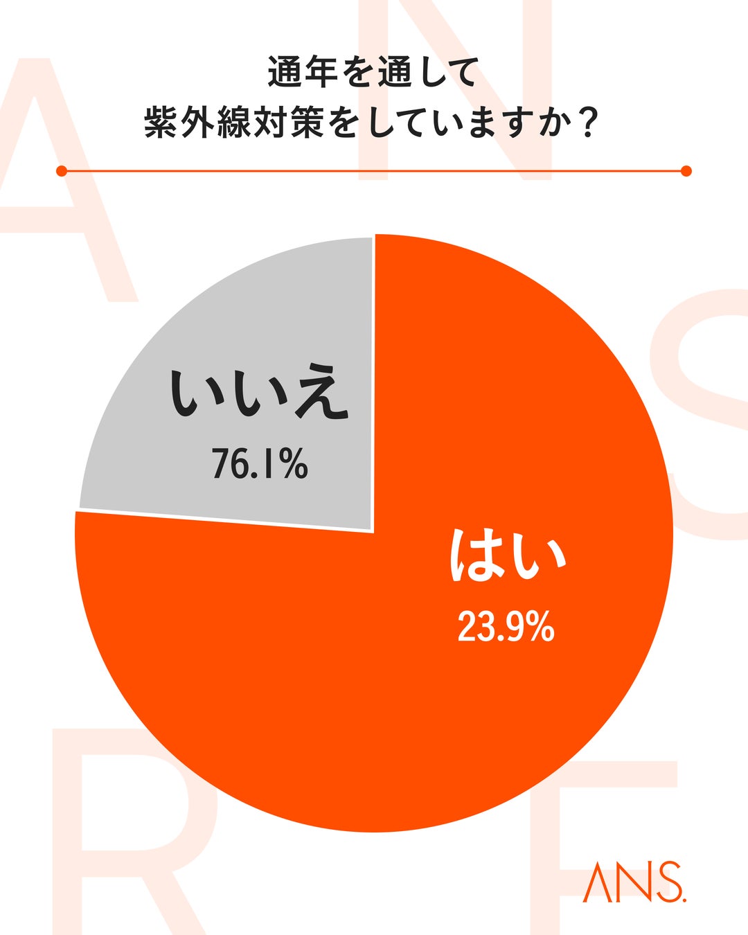 「通年を通して紫外線対策をしている」という質問に対して76.1%の方が「はい」と回答しています。