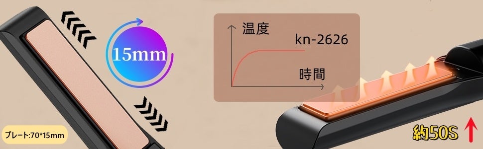 充電式ヘアアイロンはダブルMGHヒーターを搭載し、約50秒で160℃に達します。温度ボタンを押して、適当な温度に設定すると、温度表示が点滅し、加熱がスタートします。設定温度に達すると、温度表示が点灯します。持ち運びヘアアイロンはメモリー機能が搭載されていますので、次回は温度再設定の手間がいりません。