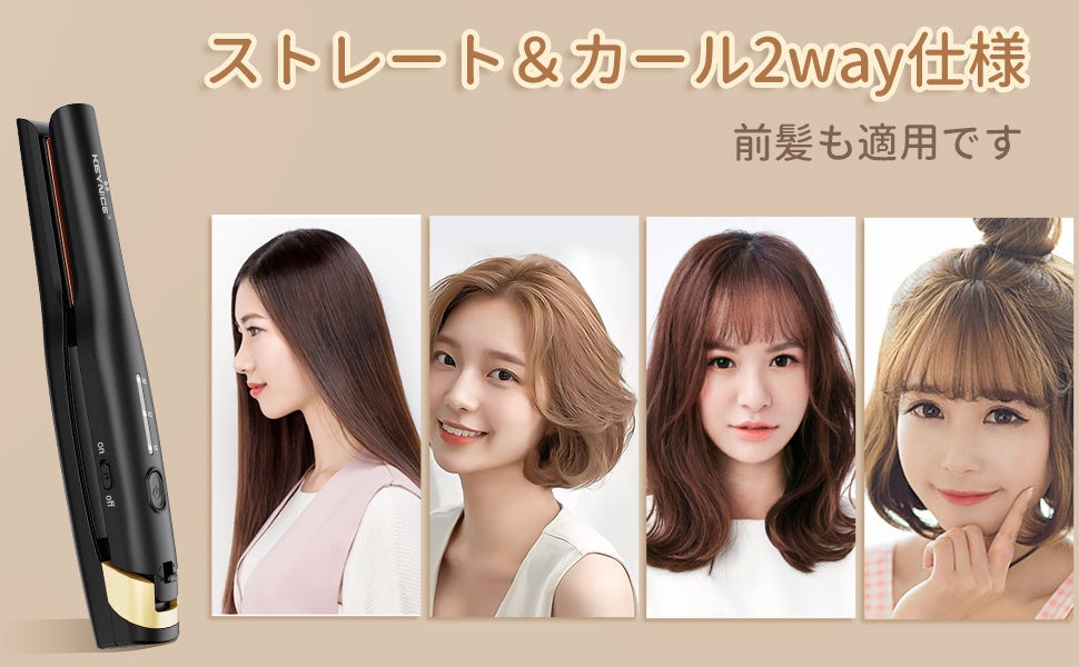 ▶3段階温度調節可能&2Way対応本コードレスヘアアイロンは160℃、 180℃、 200℃の3段階の温度調節が可能です。160℃の場合は細くて柔らかい髪、前髪に適用し、200℃は太くて硬い髪に適用します。このヘアアイロン1本でカール、ストレートの2Way対応ができます。