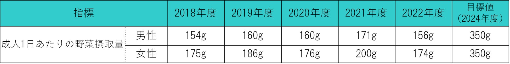 しかし、宮崎市が令和4年度に実施した調査によると、市民の野菜摂取量は、男性156g、女性174g。目標とする350gにはほど遠い結果となっており、特に20代、30代の若年層で野菜摂取量が少ない傾向にあります。