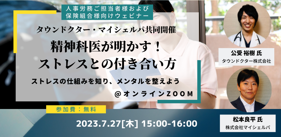 こんにちは。タウンドクター株式会社、精神科医の公受と申します。今回、現代を生きる上で避けては通れない、「ストレスとメンタル」について、2人の精神科医が語り尽くすウェビナーを開催したいと思います!