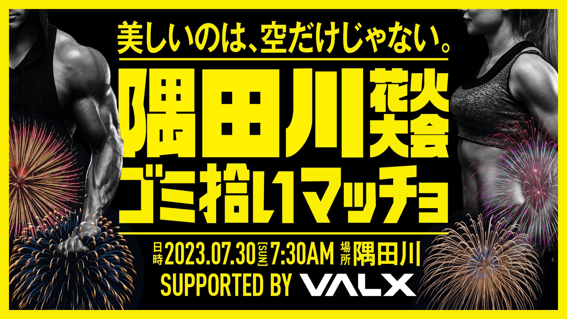 今回は、新型コロナウイルス感染症拡大の影響もあり、4年ぶりの開催となる隅田川花火大会の翌日に、川沿いを一緒に掃除してくれるマッチョを募集いたします。