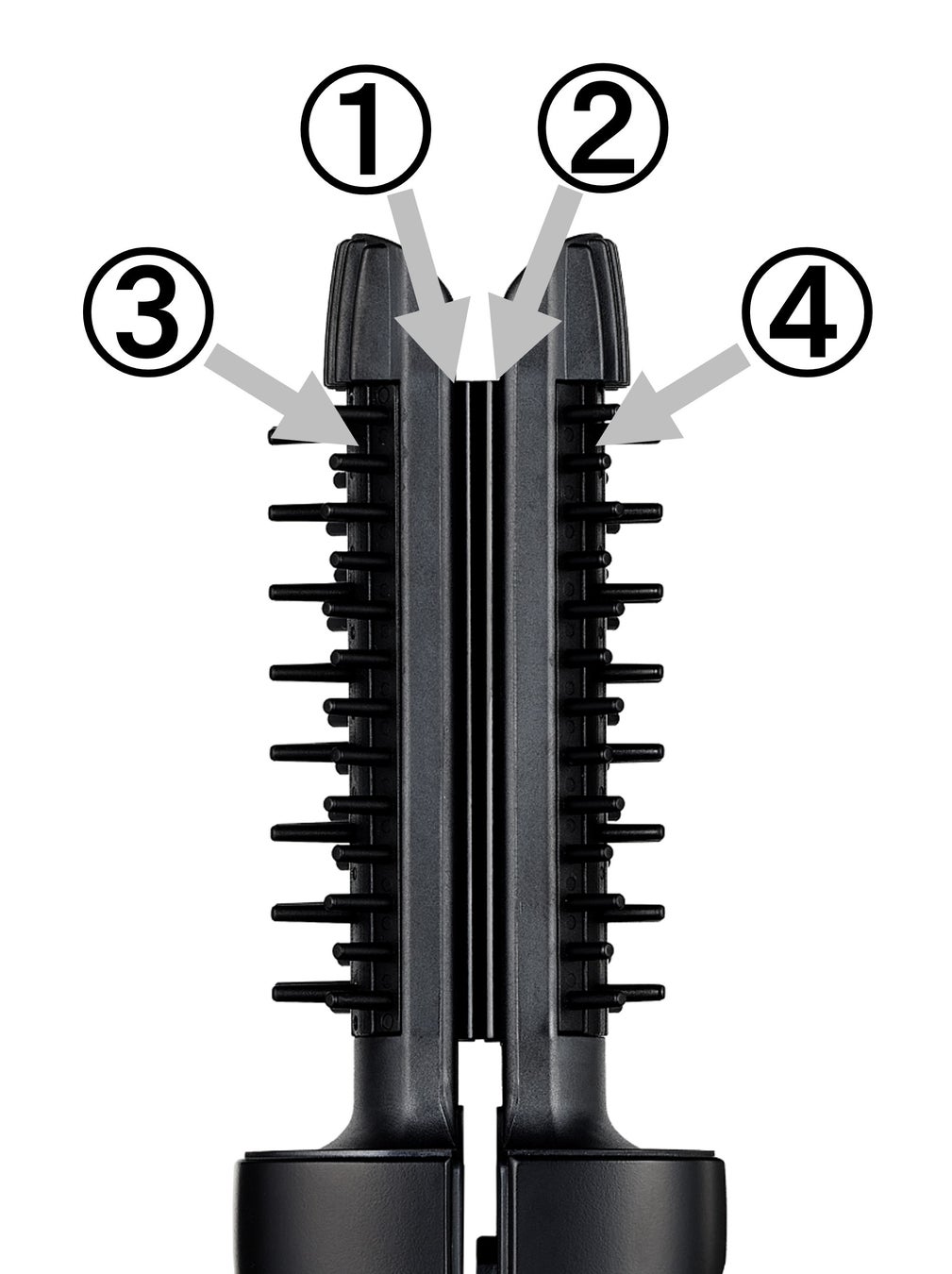 ストレート面(①②)とブラシ面(③④)を同時に温めることで、素早く髪に熱を伝えることができます。外出先でも簡単にササッとお直し。朝作ったボリュームが復活します。