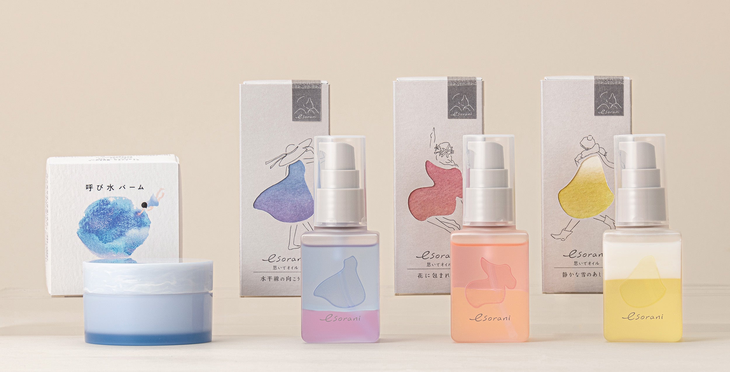 「呼び水バーム(全2種)」および「思いでオイル(全3種)」を販売中