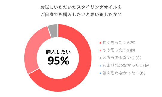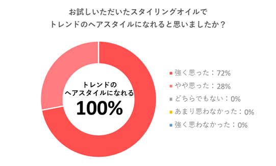 体験会にご参加いただいた人気美容系インフルエンサー・美容学生の方への「ご自身でも購入したいか」という質問に対し、95%の方が「思った」と回答。また、「トレンドのヘアスタイルになれると思いましたか」という質問に対しては、満場一致で「思った」と回答。仕上がりの良さを実感いただくことができました。