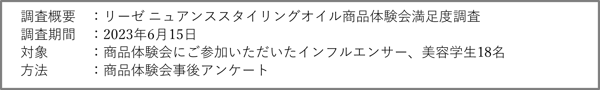 商品体験会では、人気美容師2名を講師に迎え、ヘアスタイルトレンドやオイルスタイリングのコツ、質感を重視したスタイリング方法について紹介。その後、「リーゼ ニュアンススタイリングオイル」を実際にお試しいただき、体験者18名全員の方が「(同商品で)トレンドのヘアスタイルになれる」と、実感いただくことができました。