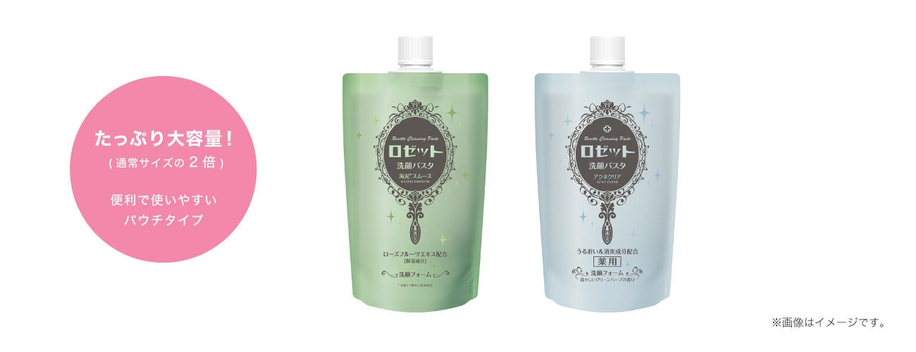 2009年の発売以来、肌悩みに合わせて“クレイ*2”を練り込んだ洗顔料として、幅広い世代のお客様からご好評いただいている『ロゼット洗顔パスタ クレイシリーズ』。その中でも人気の“毛穴汚れ対策”洗顔料「海泥*1スムース」と、“大人ニキビ対策”洗顔料「アクネクリア」の2品が、デザインはそのまま通常の2倍量でたっぷり使える大容量パウチタイプ(240g)になって新登場!