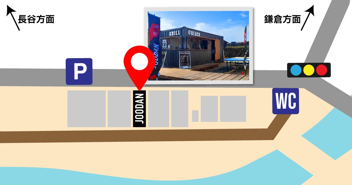 「CHILL@BEACH CAFE by JOODAN CBD」までのアクセスは、電車がおすすめです!駅から海水浴場まで歩いて7分。電車であれば、気兼ねなくお酒も楽しめるので、ぜひ電車でお越しください!