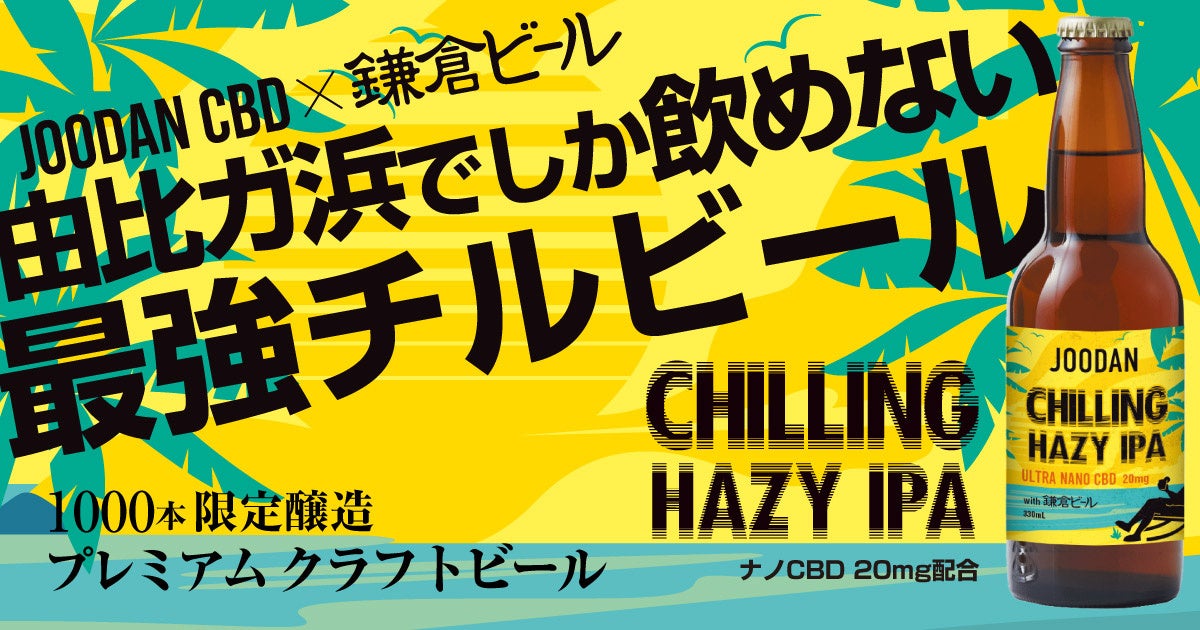 JOODAN CBDが由比ガ浜のある鎌倉市のビール醸造メーカー、鎌倉ビールとコラボし、海の家限定CBDクラフトビールを販売!ビーチでCBDクラフトビールを飲んでチルできること間違いなし。この夏の由比ガ浜でしか飲めないCBDプレミアムクラフトビール「JOODAN CHILLING HAZY IPA ULTRA NANO CBD 20mg」を飲みに由比ガ浜のJOODANへ!