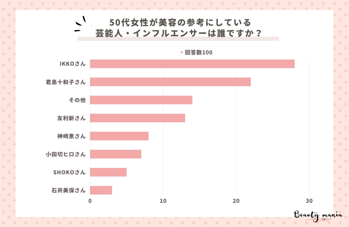 アンケート内容: 50代女性が美容の参考にしている芸能人・インフルエンサーは誰ですか?