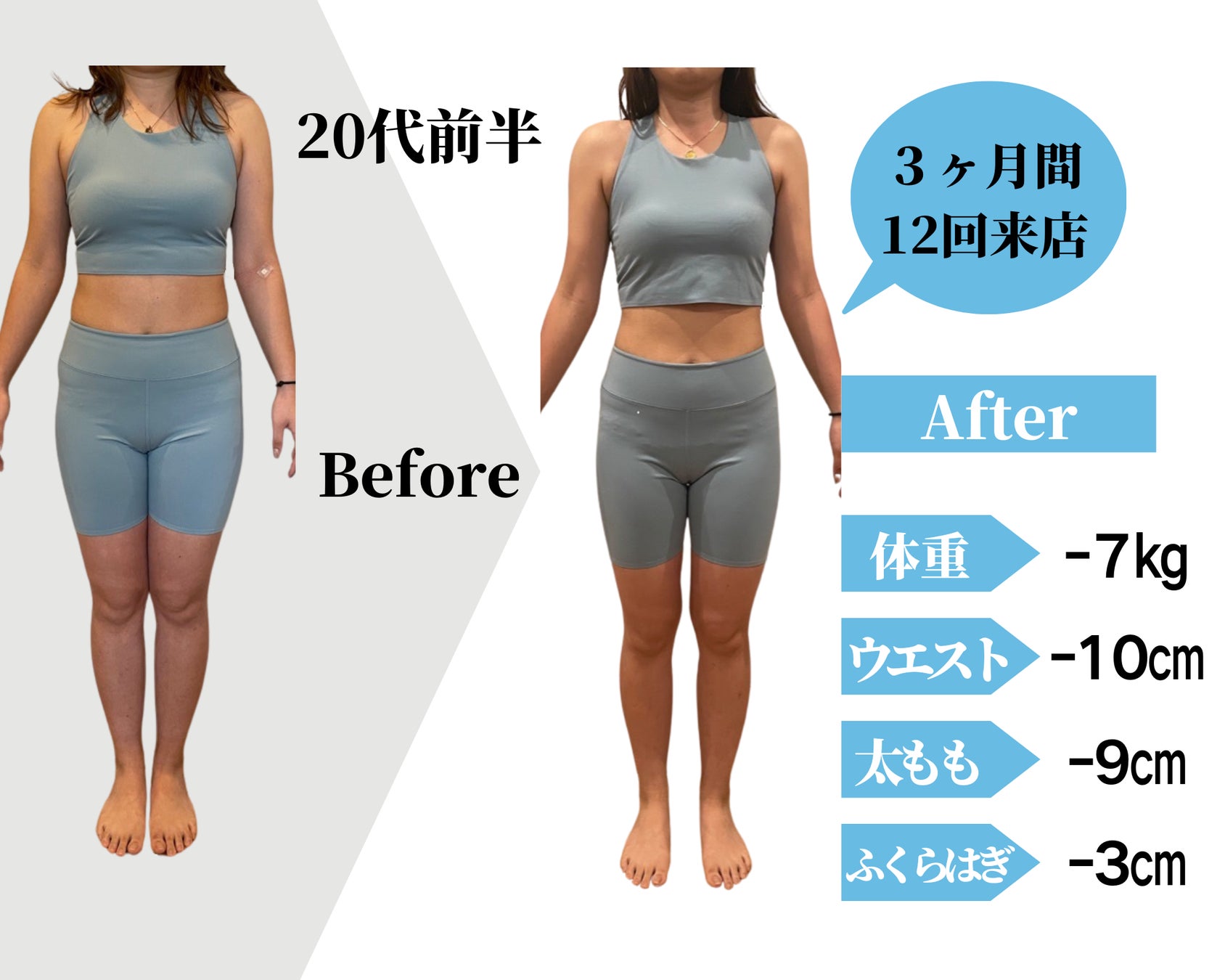 「2ヶ月で-12kg」のような短期集中型のパーソナルジムのような身体に負担をかける過度なダイエットは決して行わない ことをお約束いたします。健康のために行っている1つでもあるダイエットに対して、健康リスクを損なうだけでなく、リバウンドを繰り返してしまう「負の連鎖」 になってしまうからです。