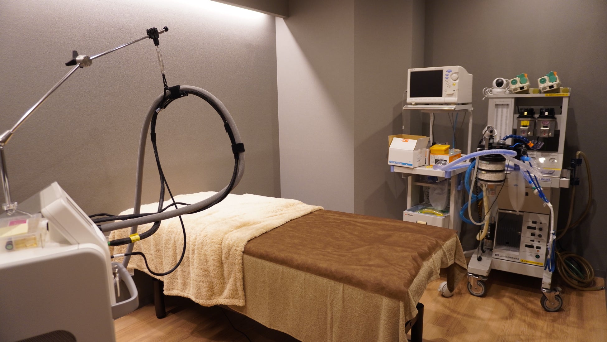 快適に痛みを感じずに医療脱毛を受けていただくために、安全性にも十分な配慮を行なっております。麻酔器や生体モニターなど外科手術も可能な設備を完備しており、全身麻酔の管理は必ず麻酔科専門医が行います。また、介助につく看護師も手術室や外科病棟の経験者です。