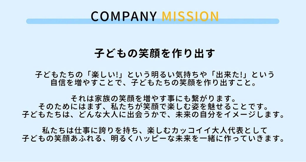 「子どもたちの笑顔で家族の時間を豊かにする」を理念に、子ども向け事業を展開しています。