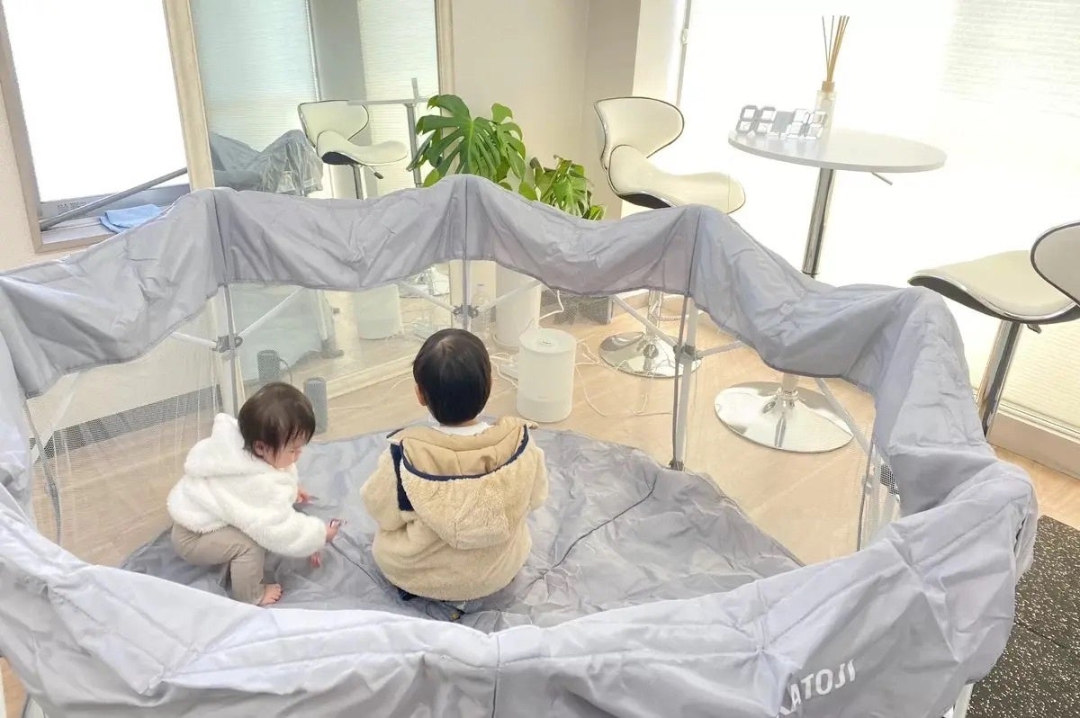 レビナでは全店ベビーサークルを用意しています。お子様が目の届く範囲におりますので、ご自身のトレーニングに集中して取り組めます。