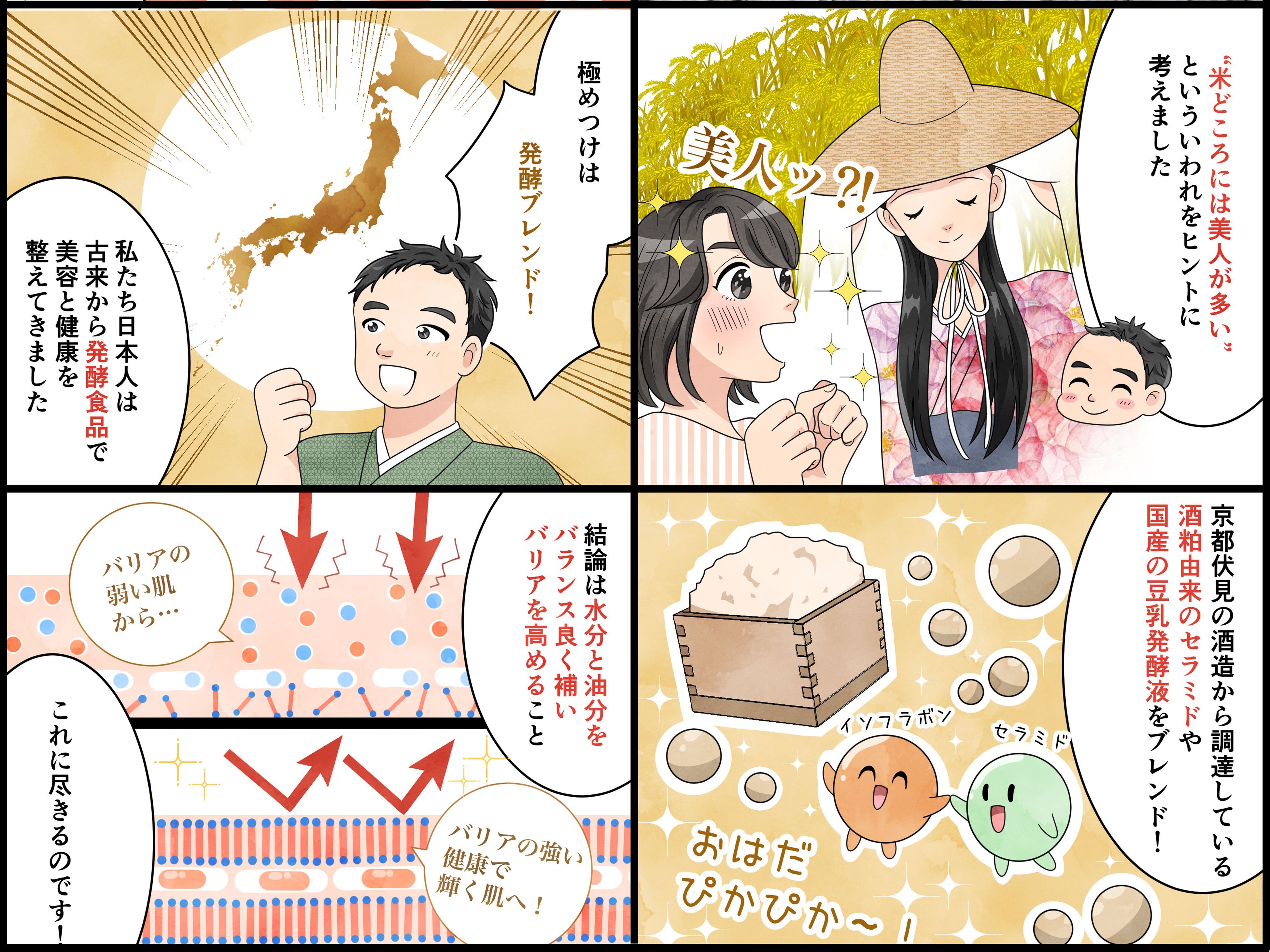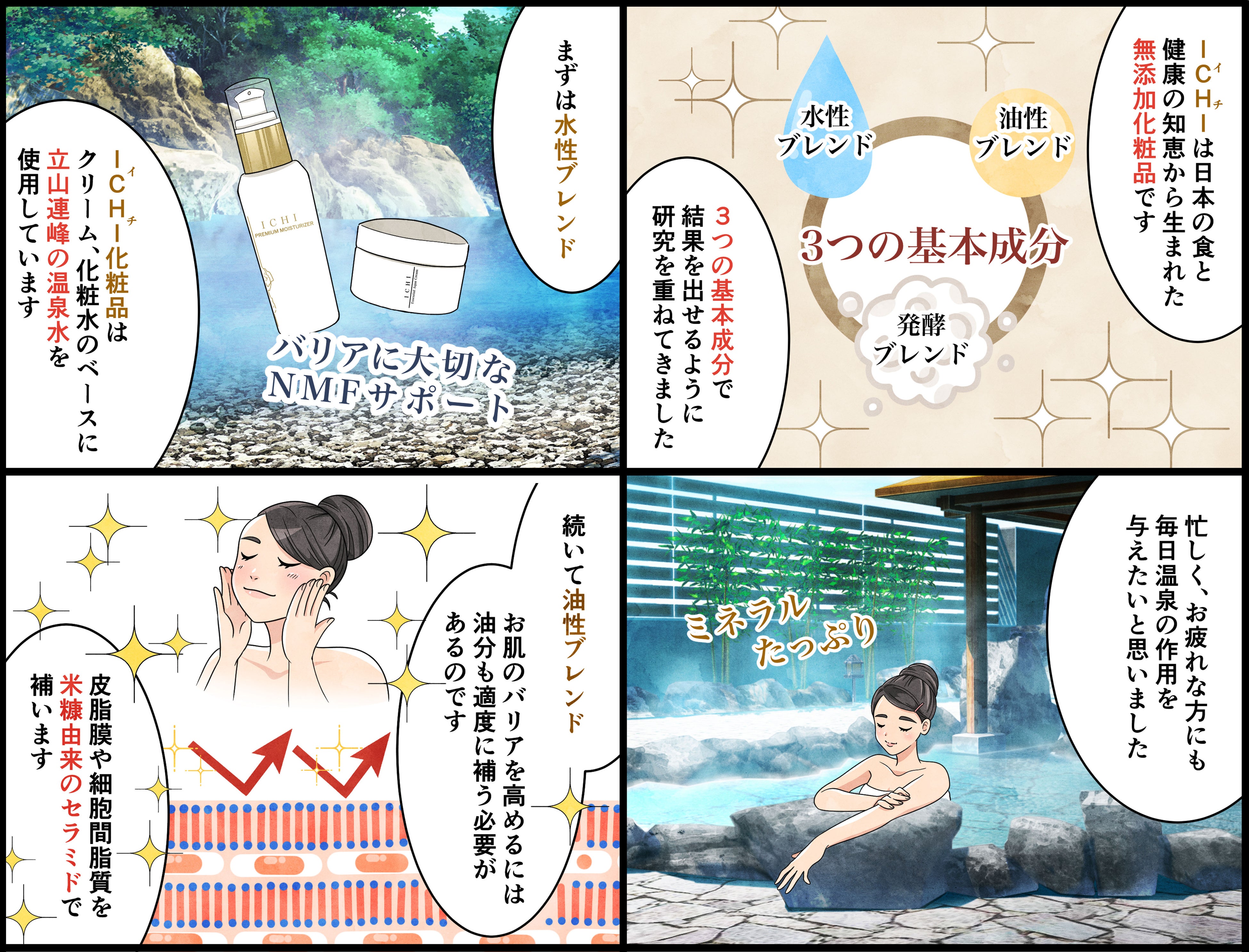 この経験を重ねるうち、海外のお客様から日本の化粧品は品質が良く、安全で信頼できるという高い評価を受ける事を強く感じ、自分のブランドを立ち上げたいという思いが沸き上がり創業を決意。日本の「食」と健康の「知恵」をコンセプトとしたICHI化粧品を2004年に京都で誕生させました。