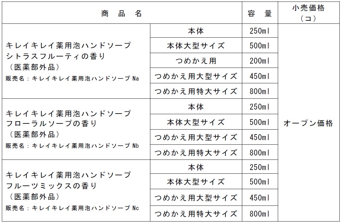 ・ハンドソープ市場売上No.1ブランド(※3)の『キレイキレイ』からウイルス・細菌を除去(※2)する『キレイキレイ薬用泡ハンドソープ』を改良新発売