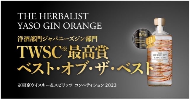 「THE HERBALIST YASO GIN ORANGE」は、アジア最大級の酒類品評会『TWSC 2023』において金賞受賞、洋酒部門の特別賞である『ベスト・カテゴリー』賞の『ベスト・ジャパニーズクラフトジン』の受賞に続き、