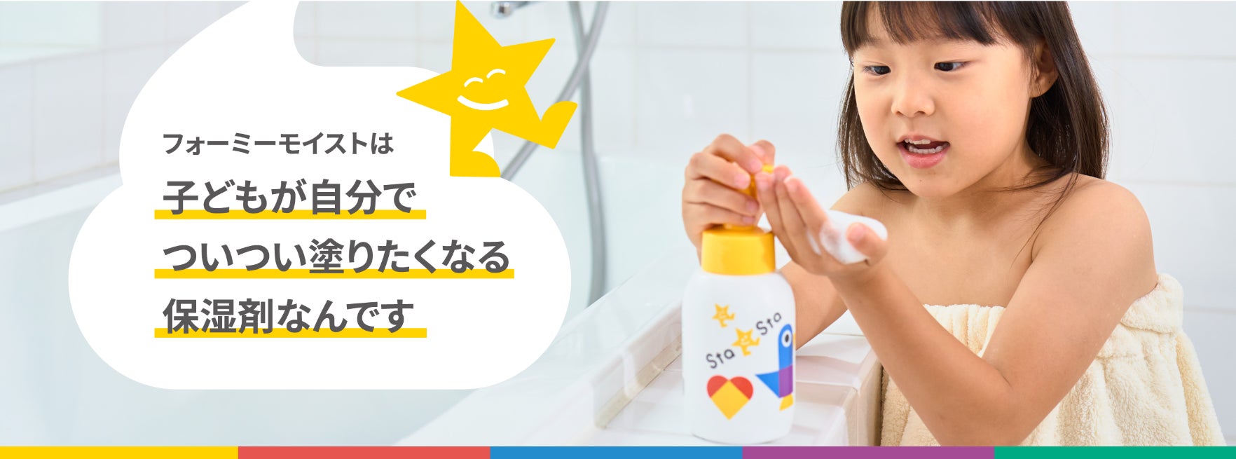 3人の娘たちが全員赤ちゃんの頃から重度の乾燥肌で、毎日のスキンケアが欠かせませんでした。肌荒れをケアしてあげたい私とスキンケアを嫌がり逃げ回る我が子。「子どもが自分で楽しくスキンケアをしてくれたら」 、この想いを胸に、事業提案に至りました。自分でスキンケアが出来るようになることは肌ベネフィットだけでなく、子どもの自立心育成にも繋がると信じています※2。「Sta★Sta」でのブランド体験を通して、親子で一緒に楽しく子どもの自立をサポートできるような未来を創出していきたいと考えています。