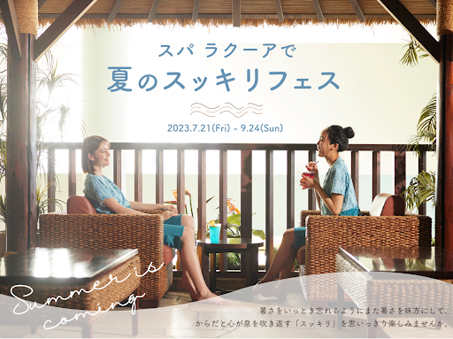 本イベントでは、今春スパ ラクーアに登場した開放的な空間で眺望が楽しめる「ランデブースクエア」を、貝殻や珊瑚を取り入れた涼やかな装飾で演出し、フットプールに浸かりながら涼を満喫したり、併設のバーでは、最近話題のモクテル(ノンアルコールカクテル)をお楽しみいただけます。また、スパ館内の飲食店舗で、夏にぴったりのおすすめカレーメニューのほか、エステ&リラクゼーション店舗では簡単フローチャートを使いタイプ別の不調解消メニューを体験できるなど、温泉やサウナと一緒に、食べたり飲んだり、さまざまな体験を通して暑い夏を乗り切るための“スッキリ”を体感できます。