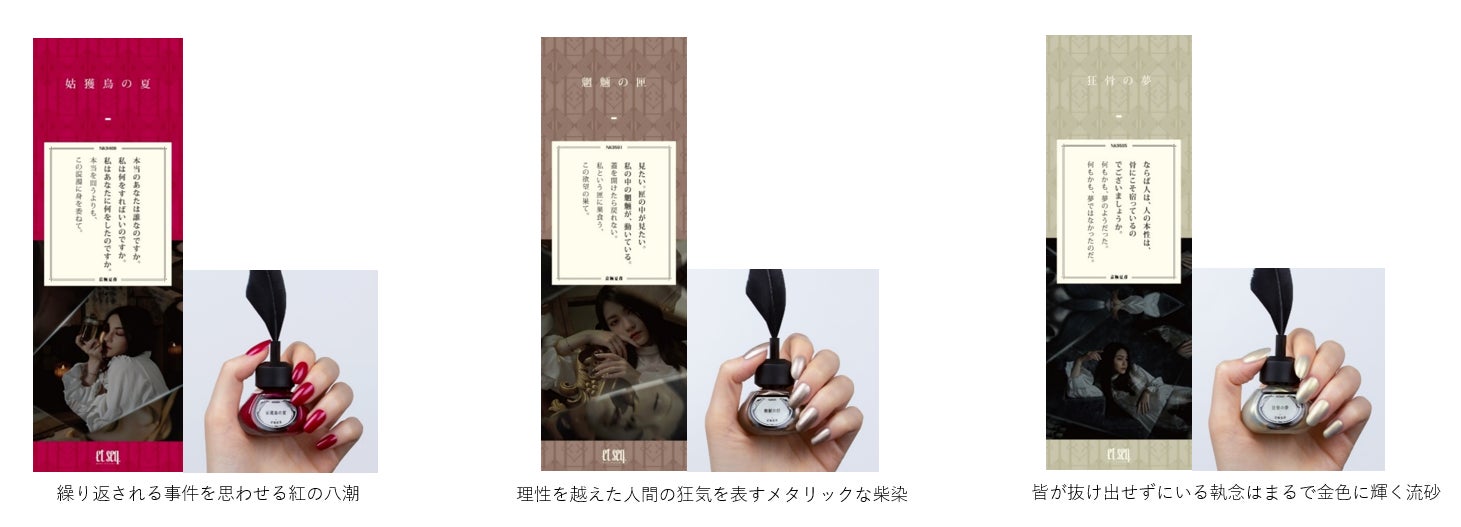 また、2021年・2022年にそれぞれ発売した「宮沢賢治」「太宰治」の2シリーズ(各5色)をはじめ、「et seq.」が展開するそのほかの“文学ネイル”(※)もあわせて販売いたします。