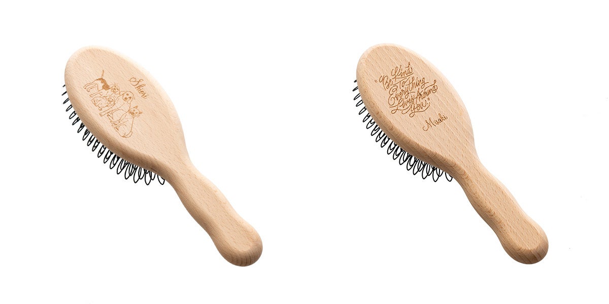 PETコレクションの商品にちなんだワンちゃんのイラストに加えて、「Be Kind To Everything Lives Around You」~自分の身の回りにいるすべての生き物に優しくしよう~といったメッセージイラストを、ACCAKAPPAの代表的な「プロテクション ヘアブラシ」に刻印いたします。