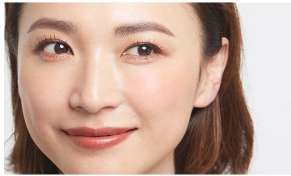 笑った時に高くなるほおの上部にチークカラーを含んだブラシを置き、半月型をイメージしてブラシを左右に動かします。その後、ほおの上部から中央にかけてぼかします。ほおの重心が上がり、スマイル顔に見せてくれます。