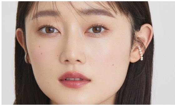 23年秋冬のメイクアップとして、ぷっくりとしたリップメイクの表現をポイントに、うっすらとフィルターをかけるように広範囲にのせるチークを組み合わせ、透明感あふれるムードであどけなさを感じる「うぶみメイク」を提案します。