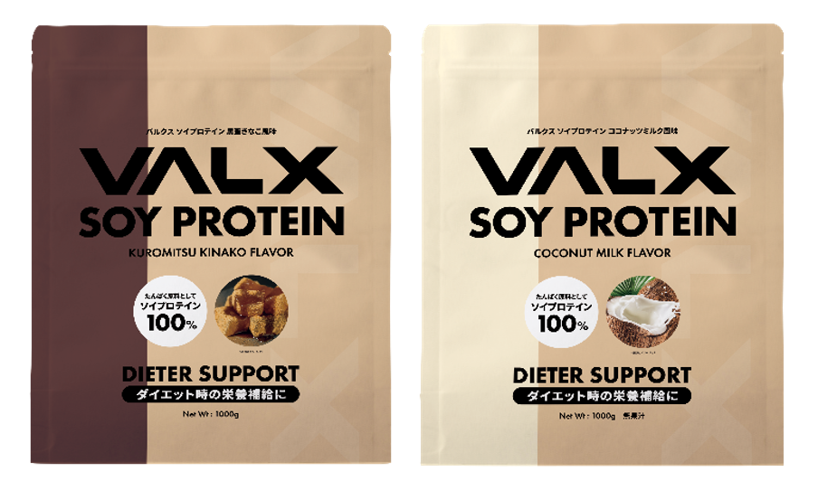 また、VALXソイプロテインからは、日本ならではのフレーバーで和を彷彿させる「黒蜜きなこ風味」と、まるで常夏のオアシスを連想させるかのような「ココナッツミルク風味」が新登場しました。