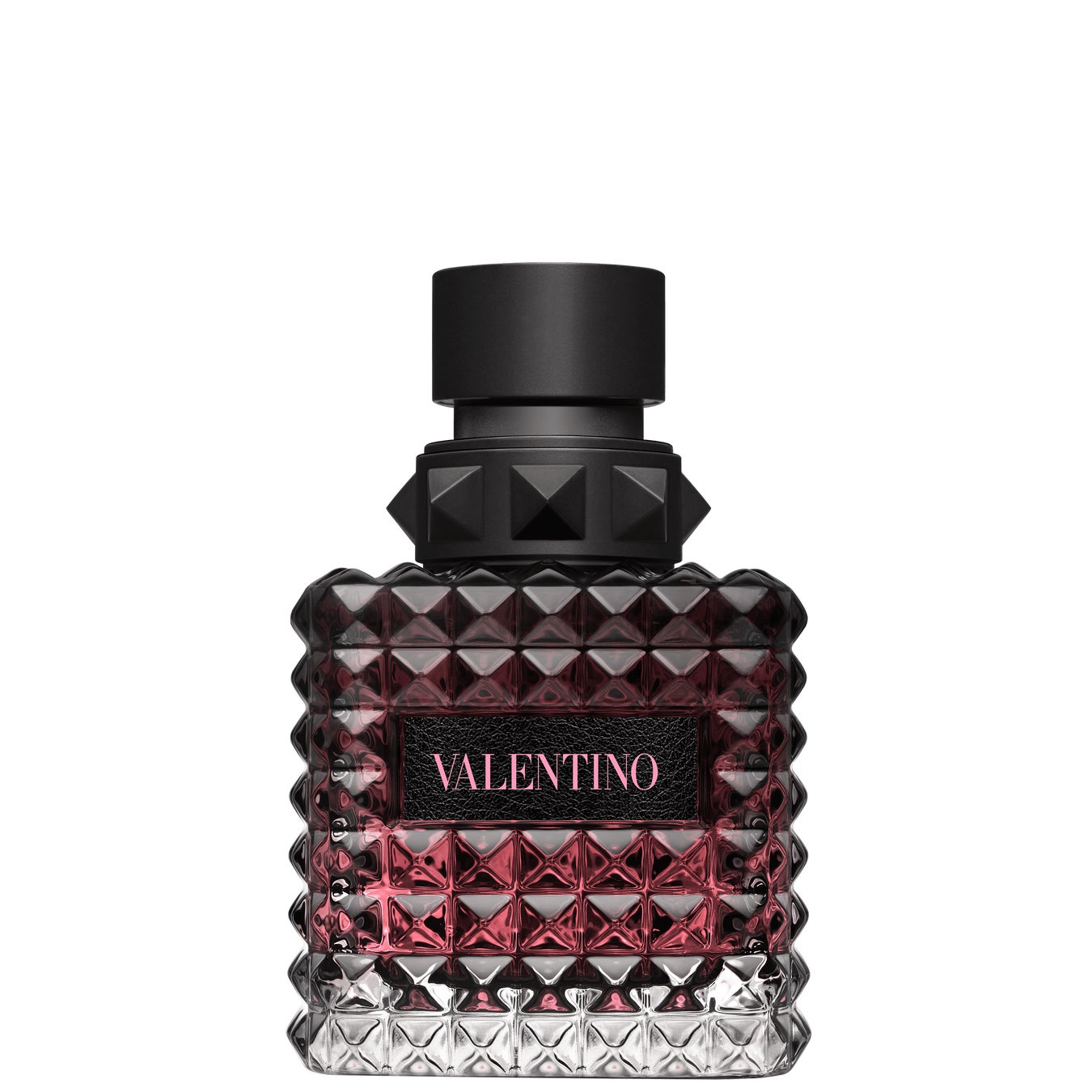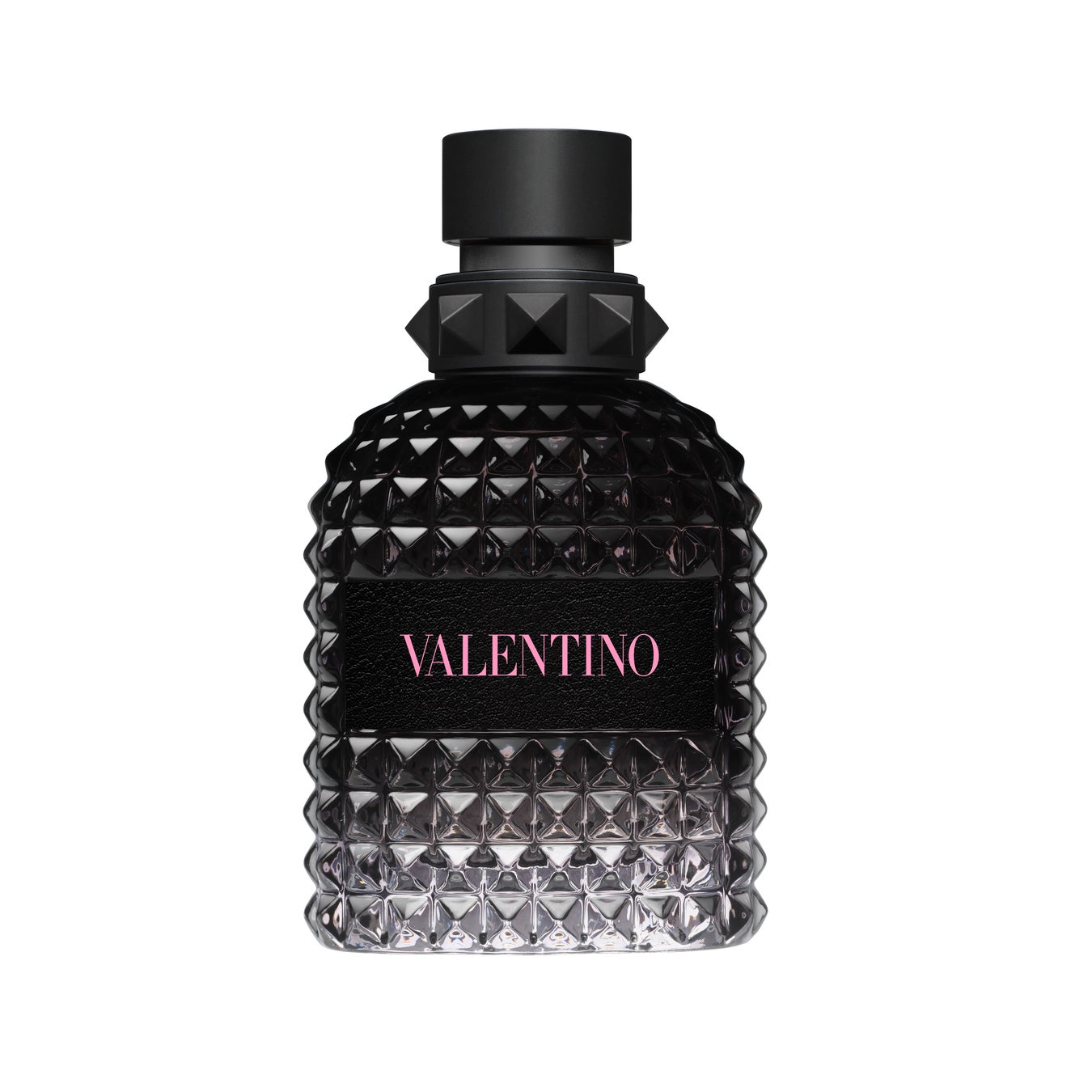 丸みを帯びたボトルと、このアイコニックなピラミッド型のロックスタッズ、⿊いラベルとヴァレンティノシグネチャーの組み合わせにより、モダンでエッジィなイメージに仕上がっています。