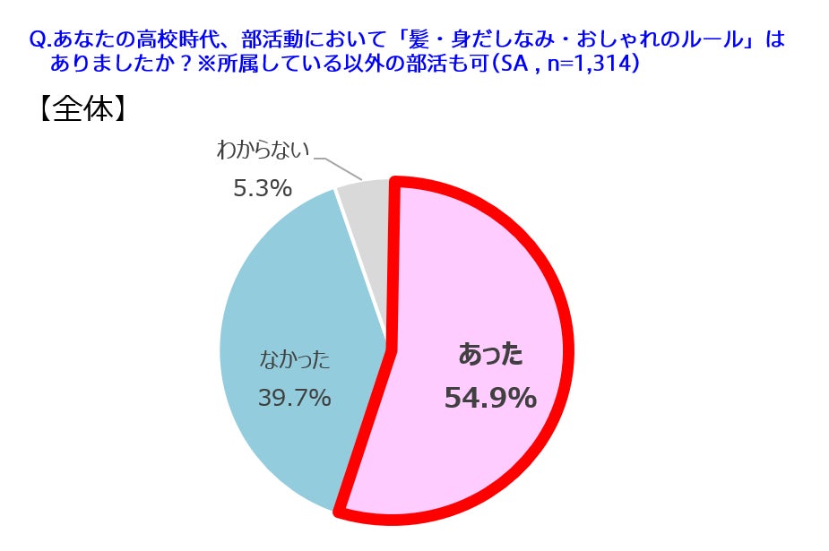 高校当時、部活のおしゃれ・身だしなみルールは、「髪の長さ」が№1! 一方、髪での自己表現は部活の参加意欲・モチベーションに好影響と6割以上が実感