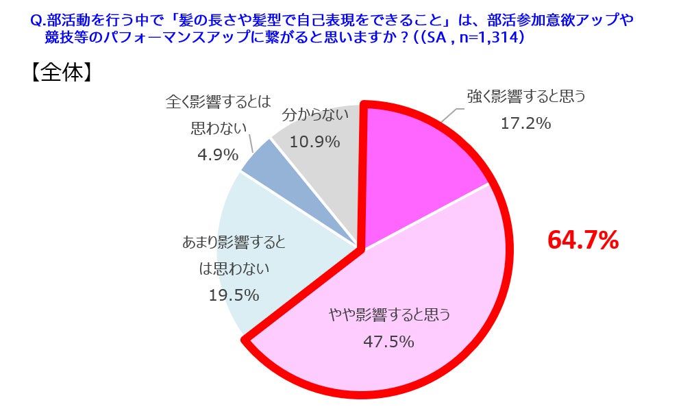 • 髪での自己表現が「部活参加意欲やパフォーマンスに好影響」と6割以上が回答!世代別では、20代は7割以上と最多!