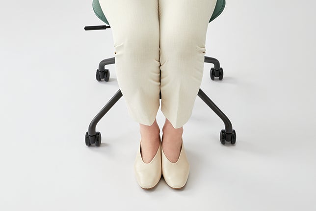 座面が前に傾くことで、身体の重心を前方でキープ。