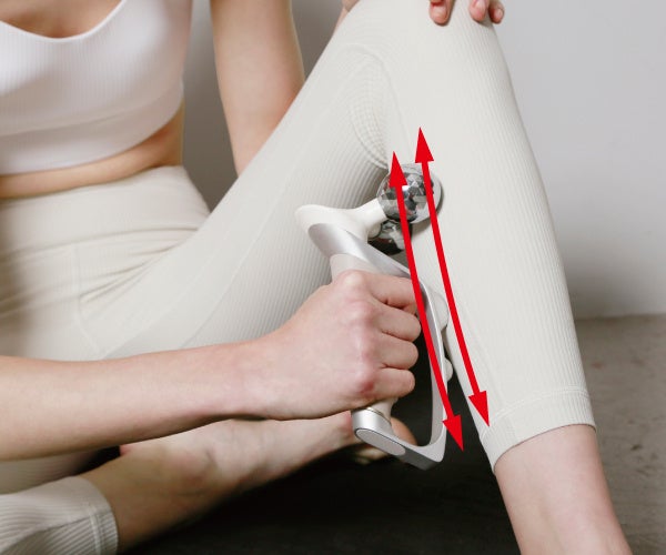 ハンドルを持つ角度を調節しながら、腰やふくらはぎなどをやさしくローリングします。