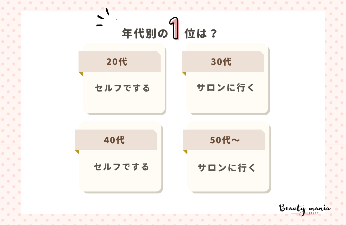 サロンに行く人・セルフでやる人それぞれ「両方試した結果、サロンに行く(セルフでやる)」という回答が多かったのも興味深かったです。