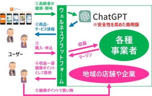 今年度は、その成果を元に『ウェルネスプラットフォーム』の改善を進め、セブン-イレブン・ジャパン、イトーヨーカ堂などを中心とした地元企業と協力しながら、当アプリで取得している健康および興味データや天気や気温情報より、セキュアなAI技術を用いた活動や商品のリコメンドを実施することで、高齢者自身が自発的に健康行動と経済活動を実施することを確認し、社会実装に向けた地域の事業性を検証いたします。