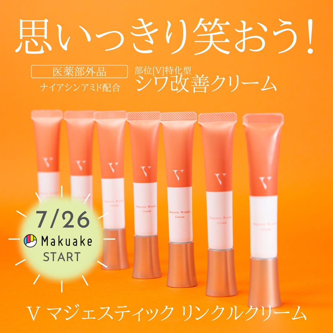 発売に先駆けて、クラウドファンディングサイト「Makuake」にて新商品「Vマジェスティックリンクルクリーム」の応援販売を開始いたしました。