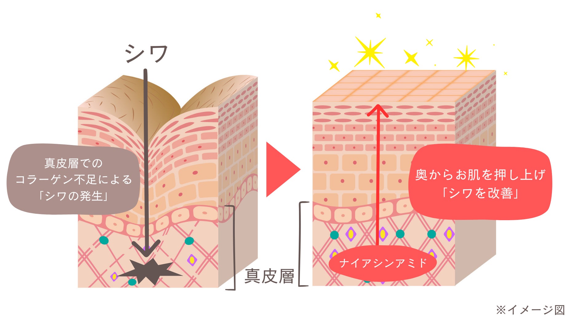 有効成分、ナイアシンアミドがシワを改善しながら、