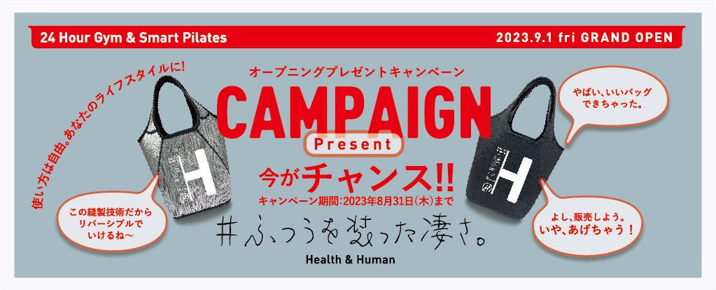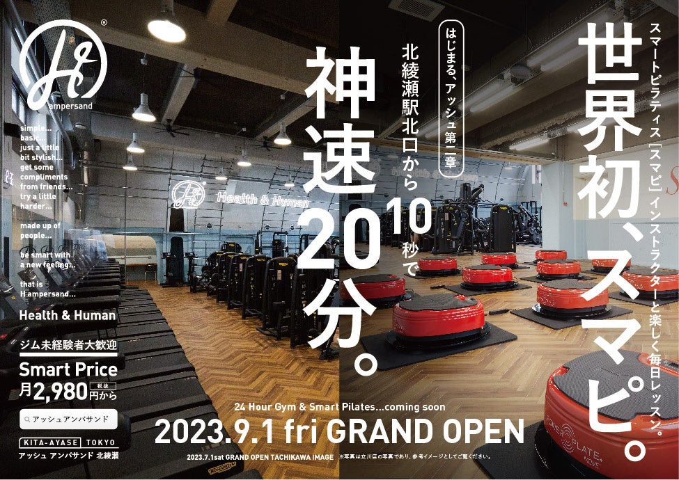 「ふつうを装った凄さ」24時間ネイキッドジム。24時間ジムでは世界初(※1)、スマートピラティス「スマピ」を展開。未経験でも、忙しくて時間がなくても、ライフスタイル別に神速20分で健康を手に入れることができる従来の24時間ジムとは一線を画すフィットネスジム。ファッションもライフスタイルも愉しい日々を過ごして欲しい。そのためには、いつも元気で健康的[Health]な毎日を。そして、ソーシャルな関係性[Human]を築いて欲しい。[Health]と[Human]その両方を併せ持つ頭文字[H]をコンセプトにフランス語のHが無音である発音[アッシュ]に加えて&=et のラテン語である「人と人の間に」の意味を背景にH ampersand[アッシュ アンパサンド]とネーミング。