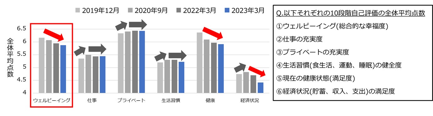・ ウェルビーイングは、2019年12月以降、3年連続で低下