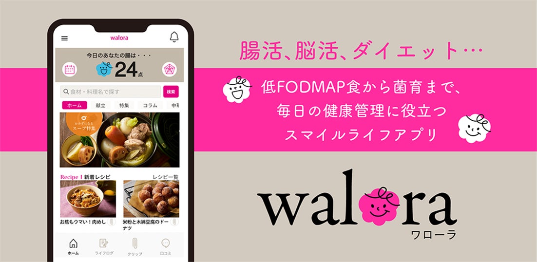 “walora(ワローラ)は、腸の専門医が監修した食事と健康管理をサポートする総合アプリです。