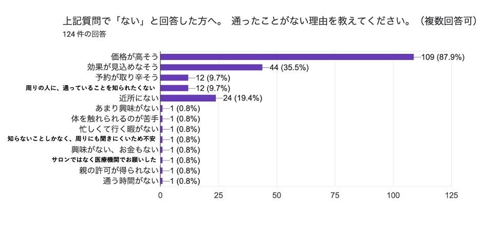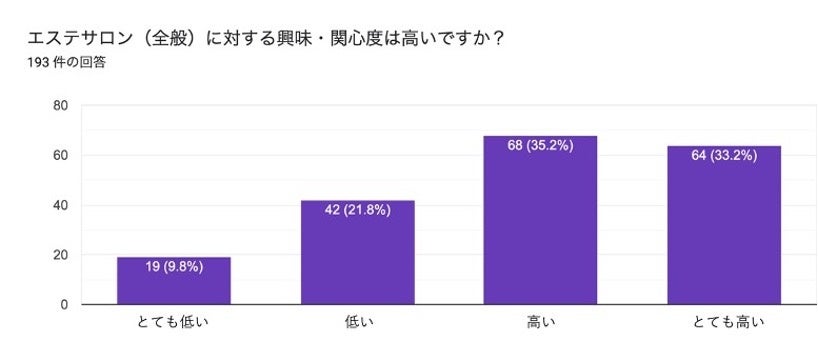 今回のオープンに伴い、Z世代に対するアンケートを実施し、その結果によると、約7割の方がエステサロンに対する興味関心があり、興味をもったきっかけの中で最も多かったのが、「コンプレックスや悩みを解決したい」という回答でした。一方、実際は回答者の内、約6割の方がエステサロンに通った経験がなく、価格が高いことが大きな理由であることが判明しました。また、従来のセルフサロンに関しては「自分で施術できるのかが不安」という方が半数以上いることがわかりました。