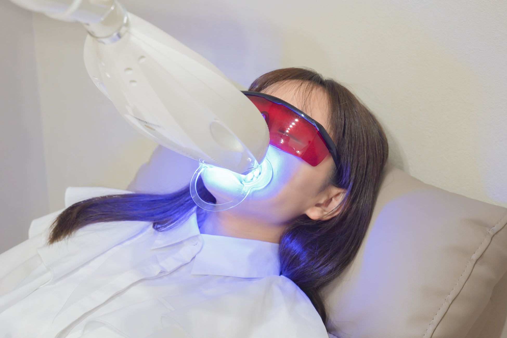 高出力のマシンで、1日40分間の本格ホワイトニング。