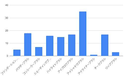 調査の結果、アイシャドウブラシが最も使用されていることがわかりました。